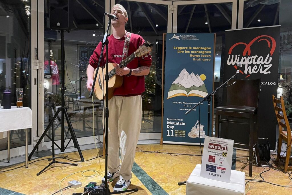 Die beiden Tiroler Singer-Songwriter Raphael Heinrich und Raphael Perle (Mundart-Pop) traten beim 50. Wipptalherz-Event unter dem Motto „Berge versetzen. Songs & Poesie“ auf. Weihnachtlich, berührend, humorvoll und sehr unterhaltsam. Winterliche Stimmungen und metaphorische Gipfelsiege, menschliche Karabiner und sommerliches Wildbachrauschenlauschen begegneten dem Publikum, das den Saal bis auf den letzten Platz füllte. Die Texte und Songs entstanden meist in den Alpen und kreisten auch vielfach um sie. In Kooperation mit dem „10. Berge lesen Festival 2024“ der Alpenkonvention.
