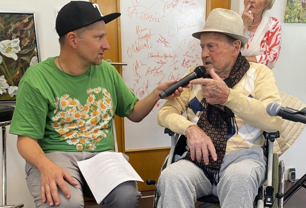 Wipptalherz Offene Tür Nr. 10 mit Ausstellung, Talk, Musik: Motto „Wachsen & Blühen“ inkl. Ausstellung der einheimischen KünstlerInnen Elisabeth Hautz (Malerei) und Gottlied Schwaiger (Fotografie), Mundart-Songs der grandiosen Tiroler Band Findling und unfassbar schönem Gespräch mit dem 106-jährigen Wipptaler bzw. ältesten Österreicher Josef Peer. Ein unterhaltsamer, legendärer Nachmittag mit Ausstellung, Talk und extrem berührender Musik in der bis zum letzten Platz gefüllten Kulturraststation.